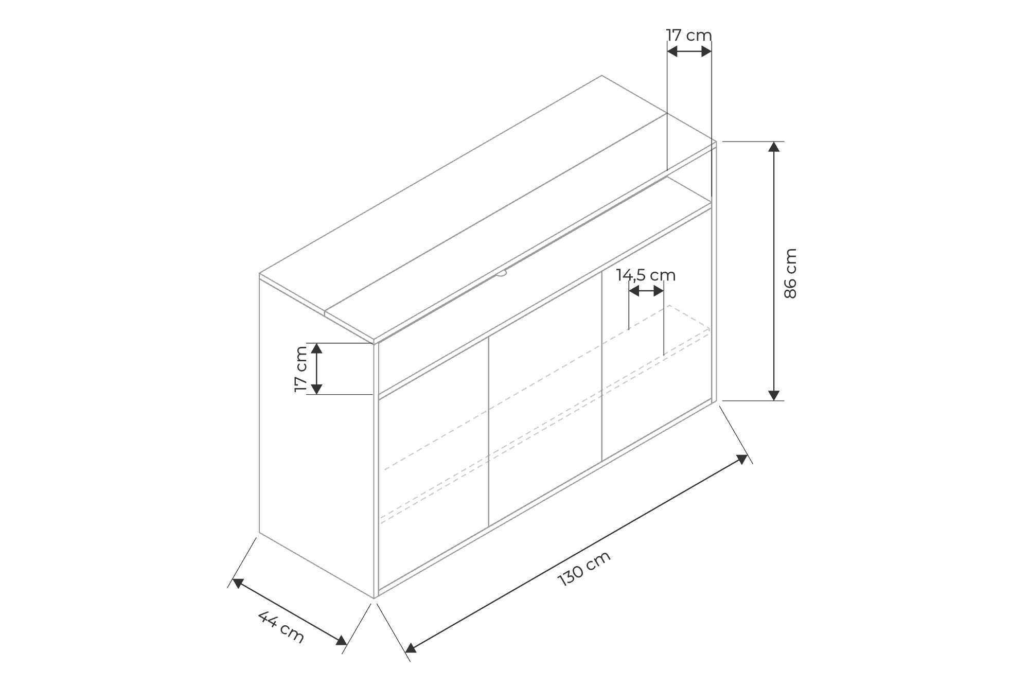 | Dimensões | 130 × 44 × 86 cm |