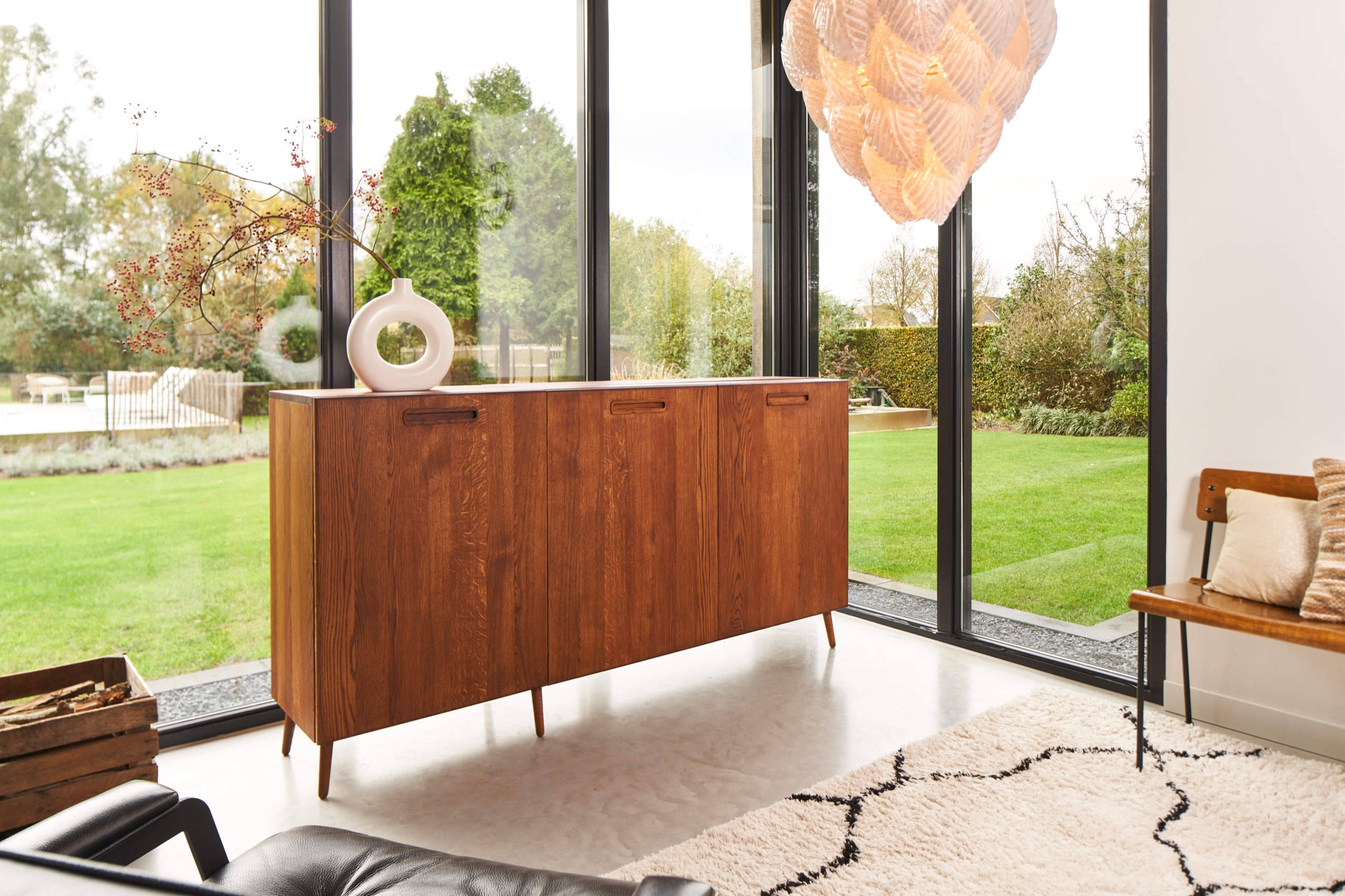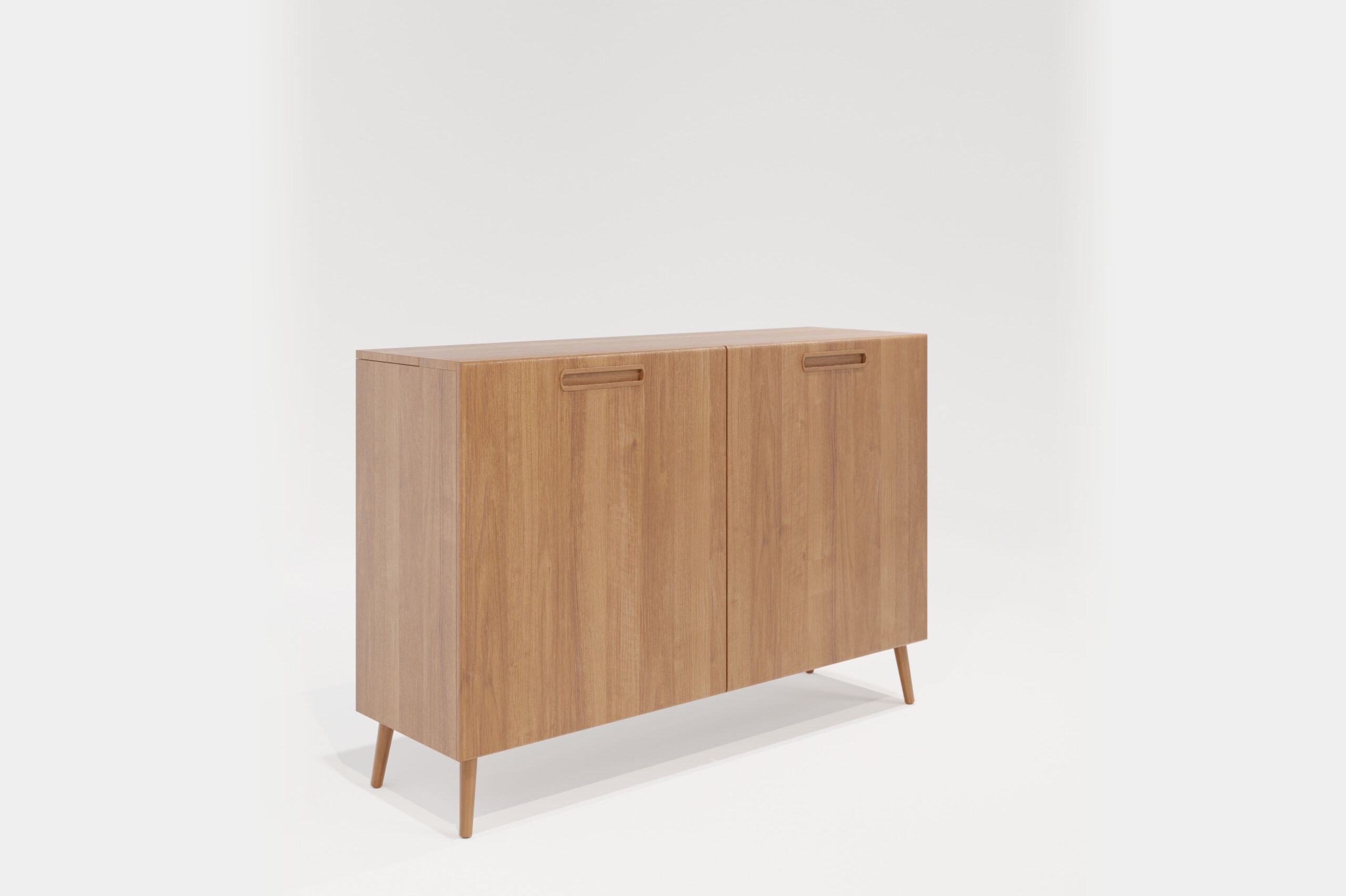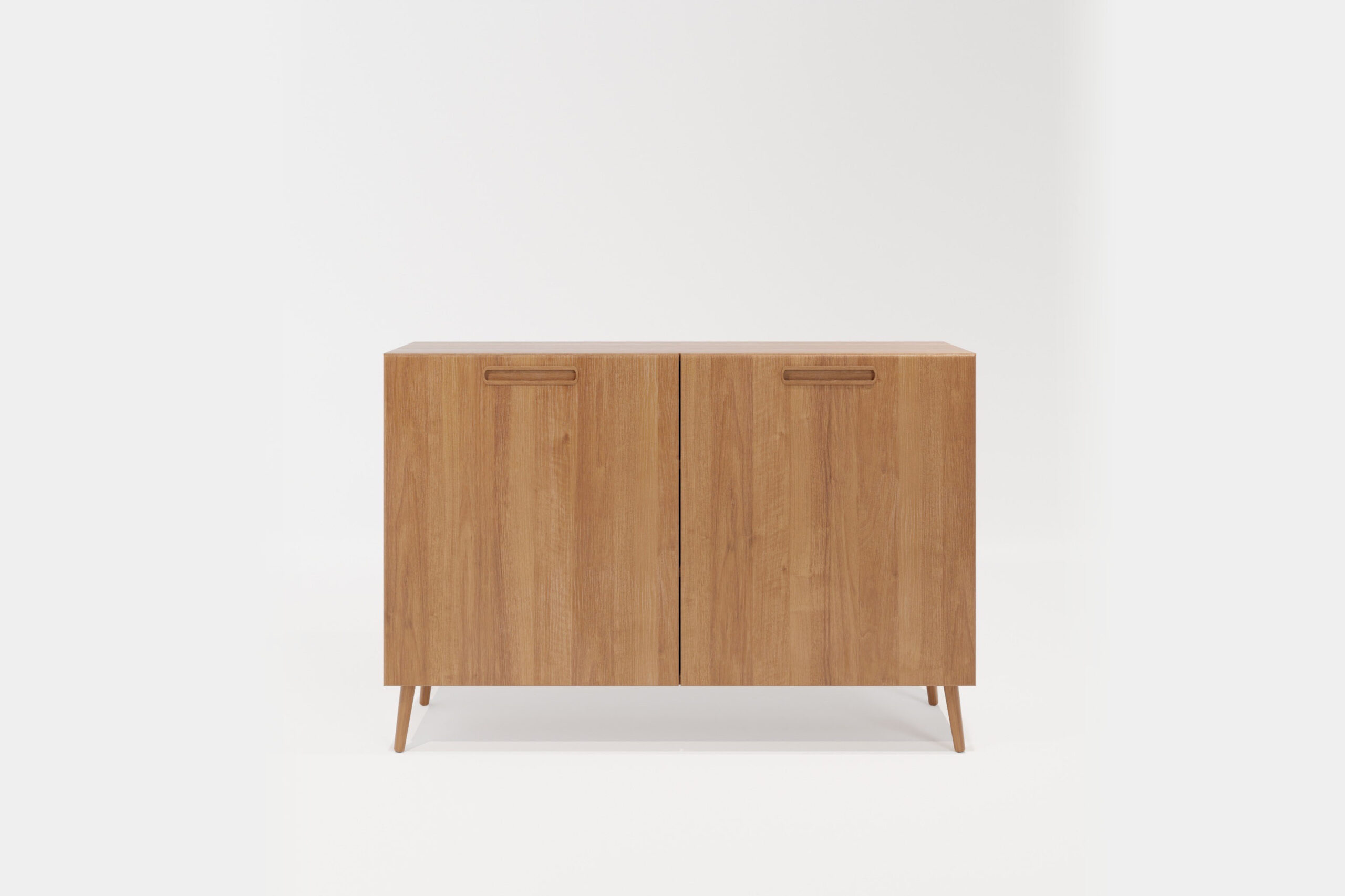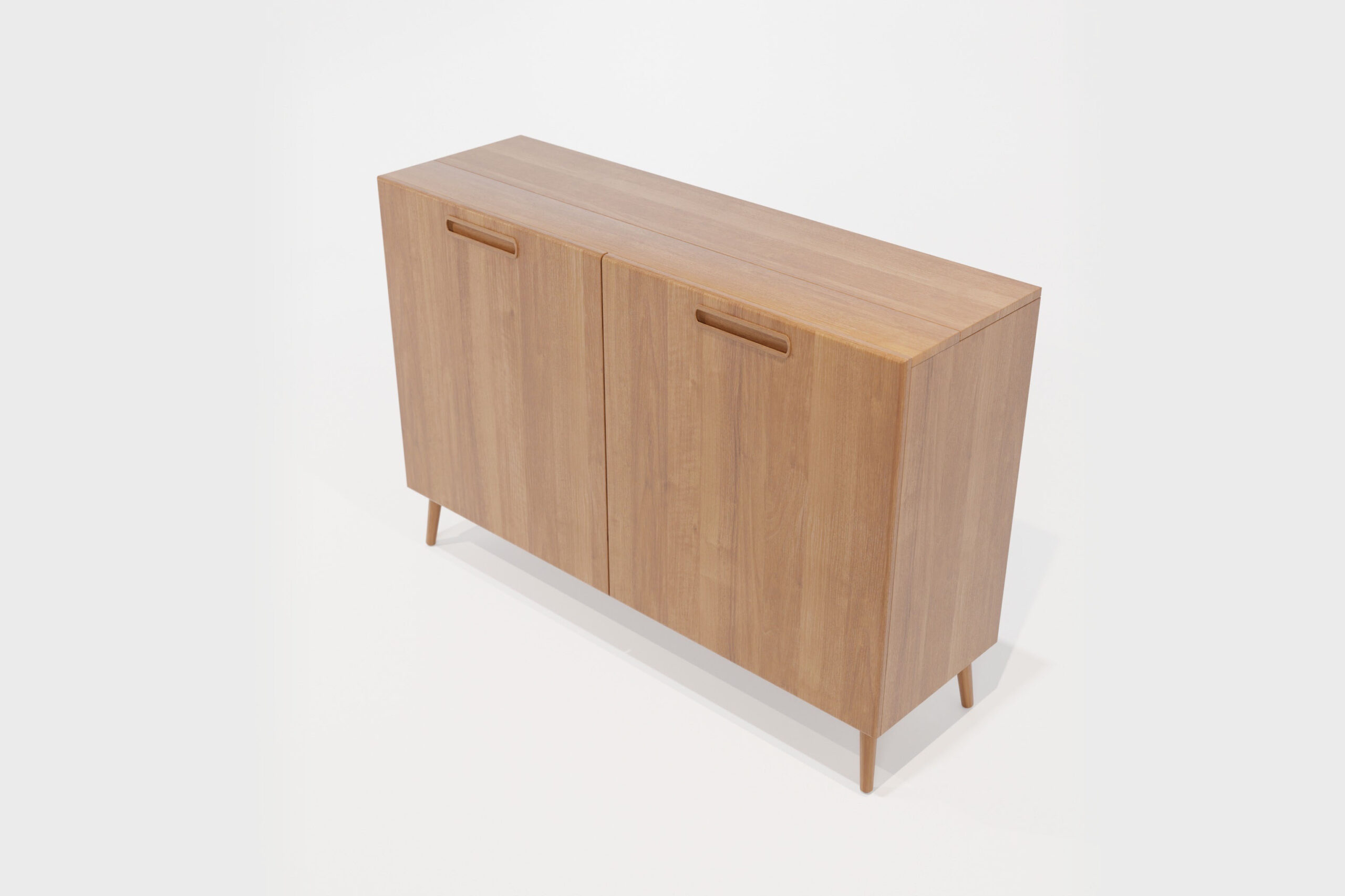 De inspiratiebron voor dit meubel is de Scandinavische woonstijl. In deze woonstijl zie je vaak de ‘Mid-Century’ dressoirs terugkomen. We hebben de typerende stijlelementen van deze meubels gevangen in een geheel nieuw design/product waardoor het past bij het interieur van de liefhebbers van deze populaire woonstijl. Dit meubel is gemaakt van het allermooiste eikenhout en afgewerkt met schuine pootjes en in gefreesde handgreepjes.